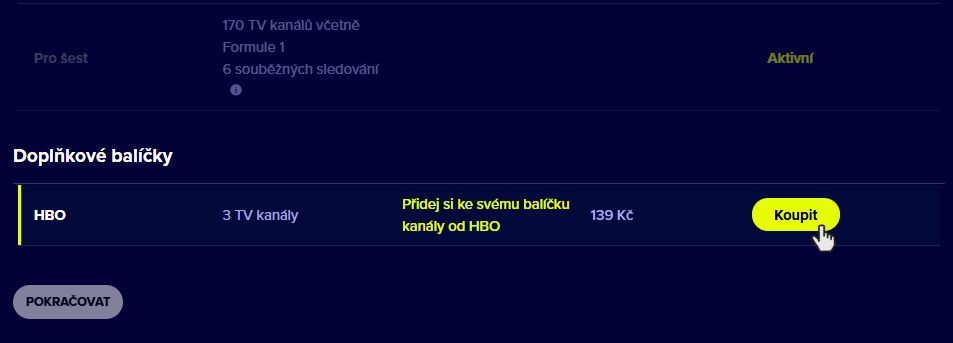 Mezi doplňkovými balíčky si zvolit HBO: