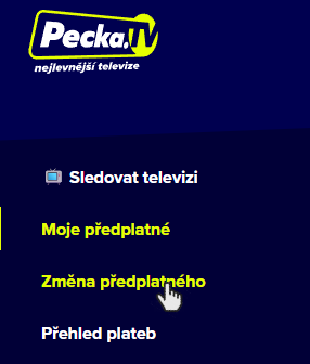 Je to jednoduché jako facka. Stačí se přihlásit do svého Pecka účtu, v pravém menu vybrat „Změna předplatného“: